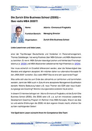 Interview mit Adonis-Emmanouil Fragkakis Managing Director der Zurich Elite Business School – ZEBS über Trends in der MBA Branche, 2012 …
